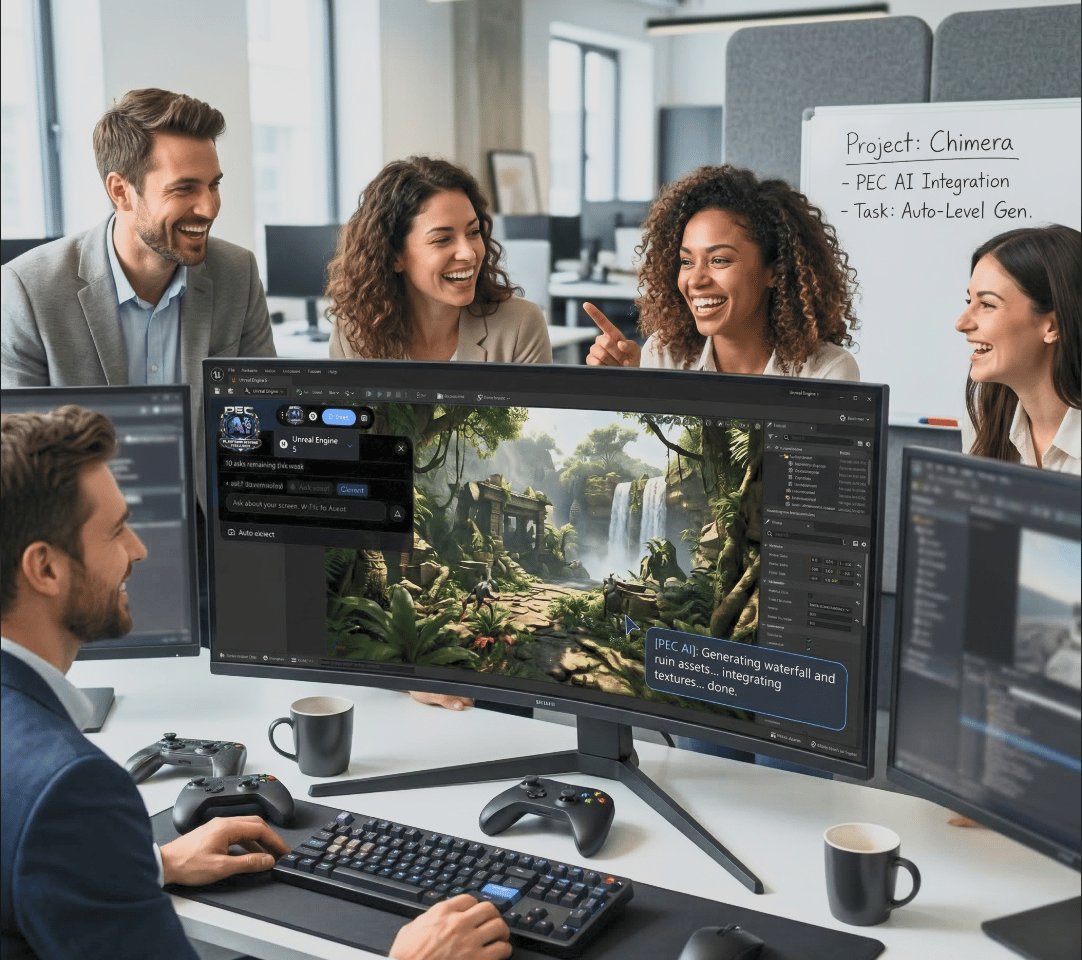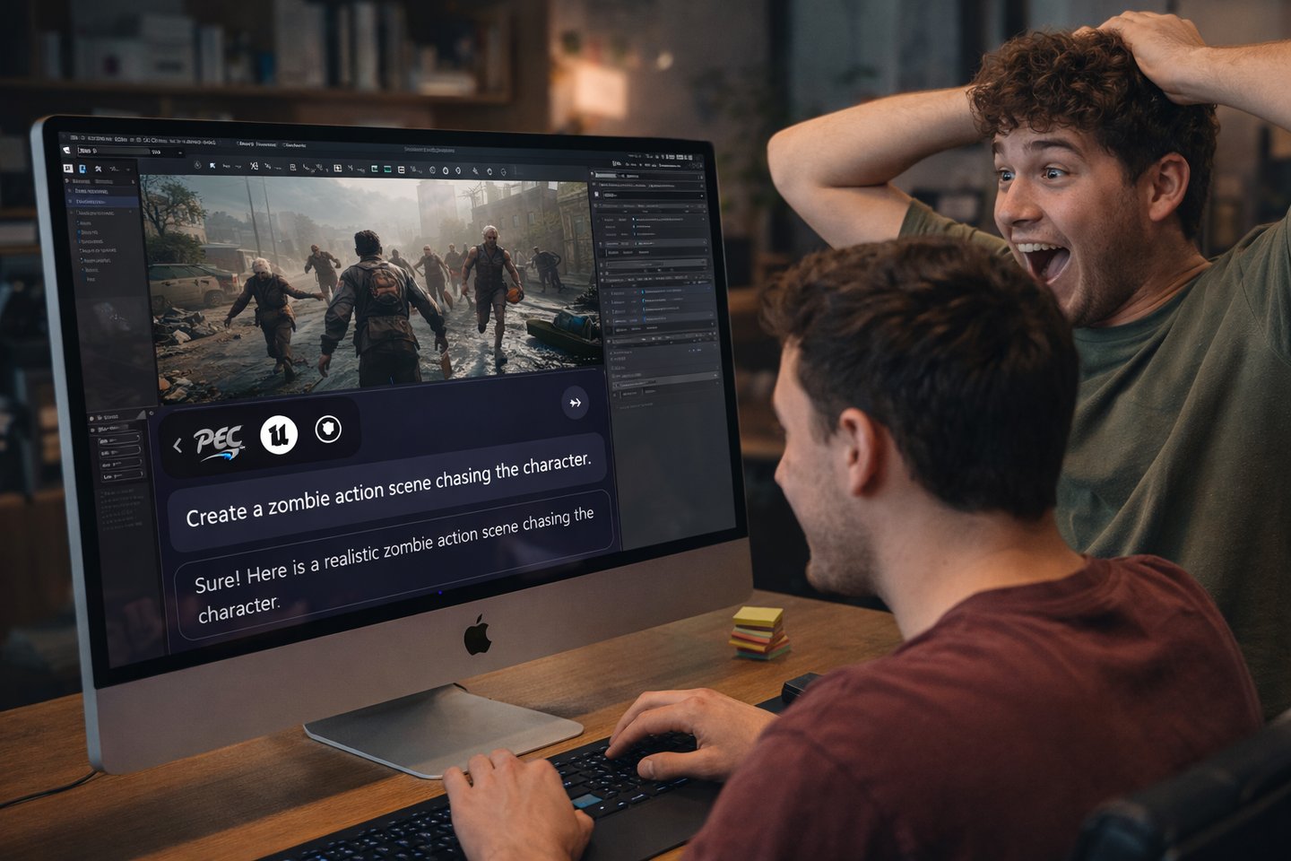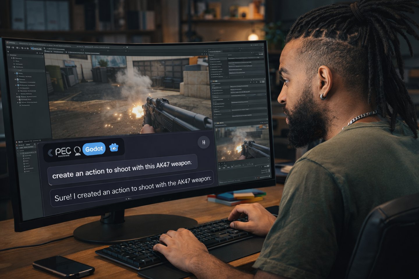PEC interacts directly with Unreal, Unity, and Godot — like a human developer.
