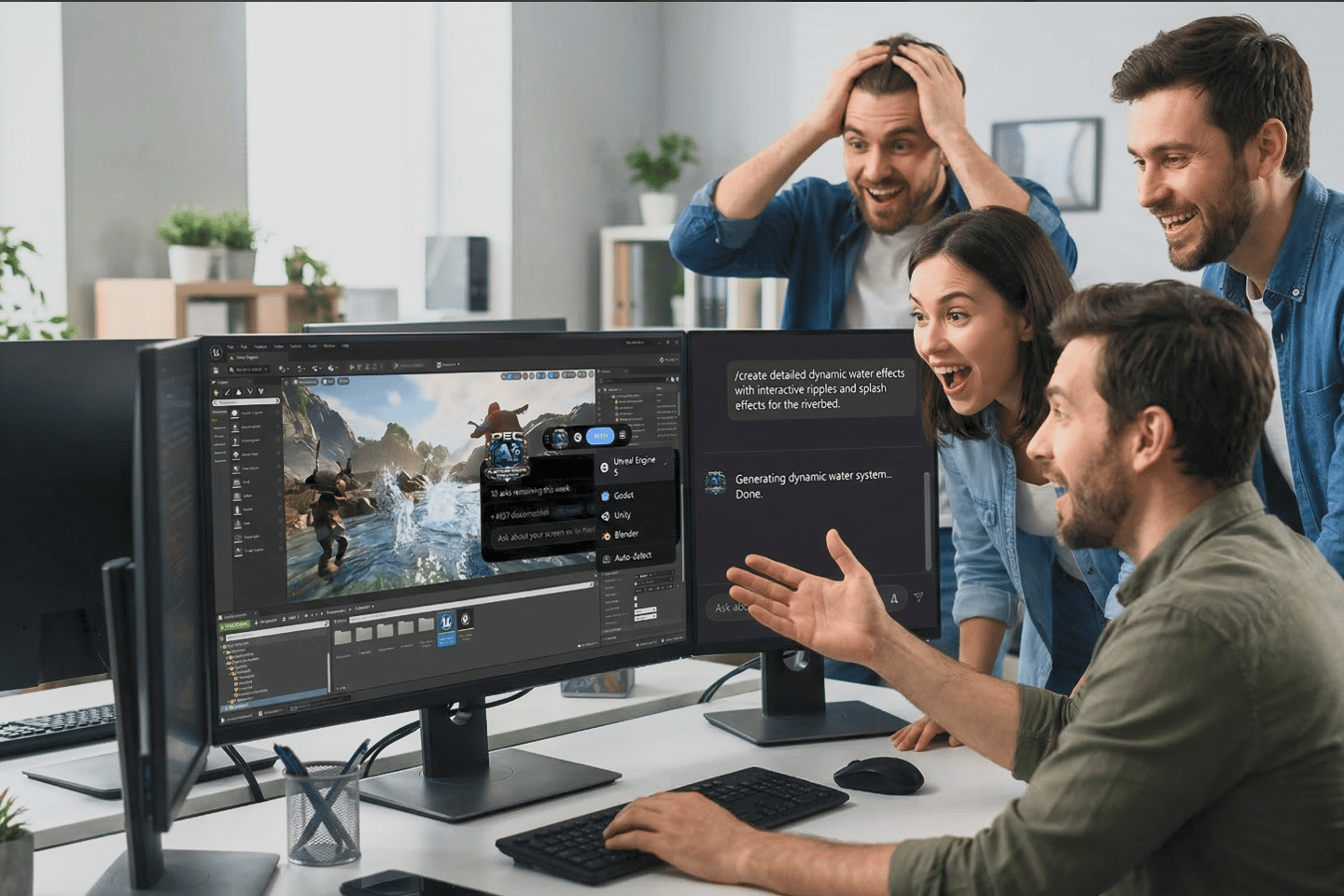 Characters, maps, effects, UI — generated instantly from your ideas.